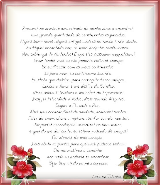 Benditos os que sofrem por amigos, os que falam com o olhar.